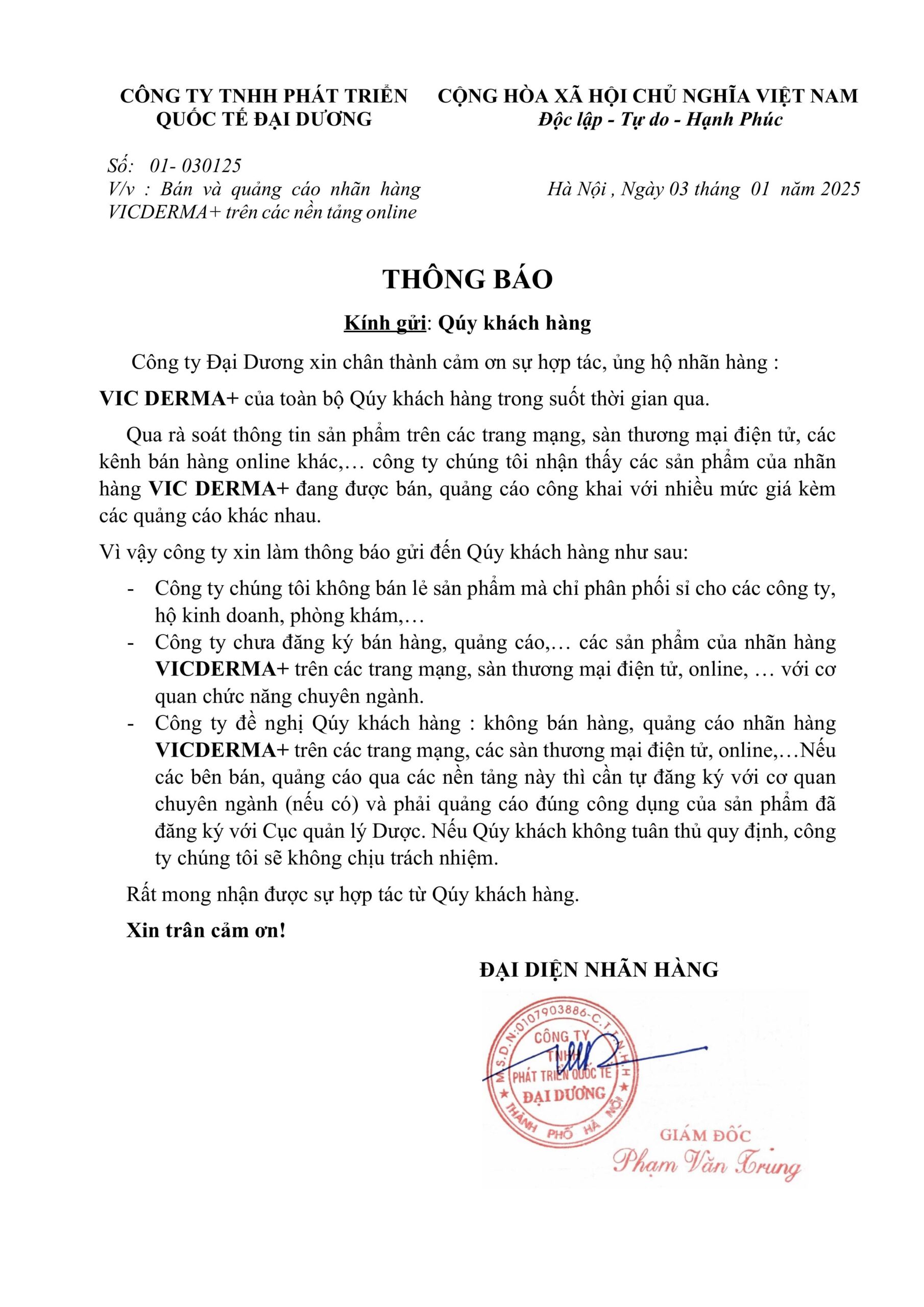 Công ty TNHH Phát Triển Quốc Tế Đại Dương ra đời năm 2017 là đơn vị chuyên phân phối độc quyền các sản phẩm thuốc , thực phẩm chức năng và mỹ phẩm đến từ các nước như Pháp, Mỹ, Nga, Hàn Quốc,… .Với sứ mệnh mang đến những sản phẩm chất lượng nhất, an toàn nhất dành cho người tiêu dùng Việt, giúp người tiêu dùng có thể chăm sóc sức khỏe của mình một cách tốt nhất.